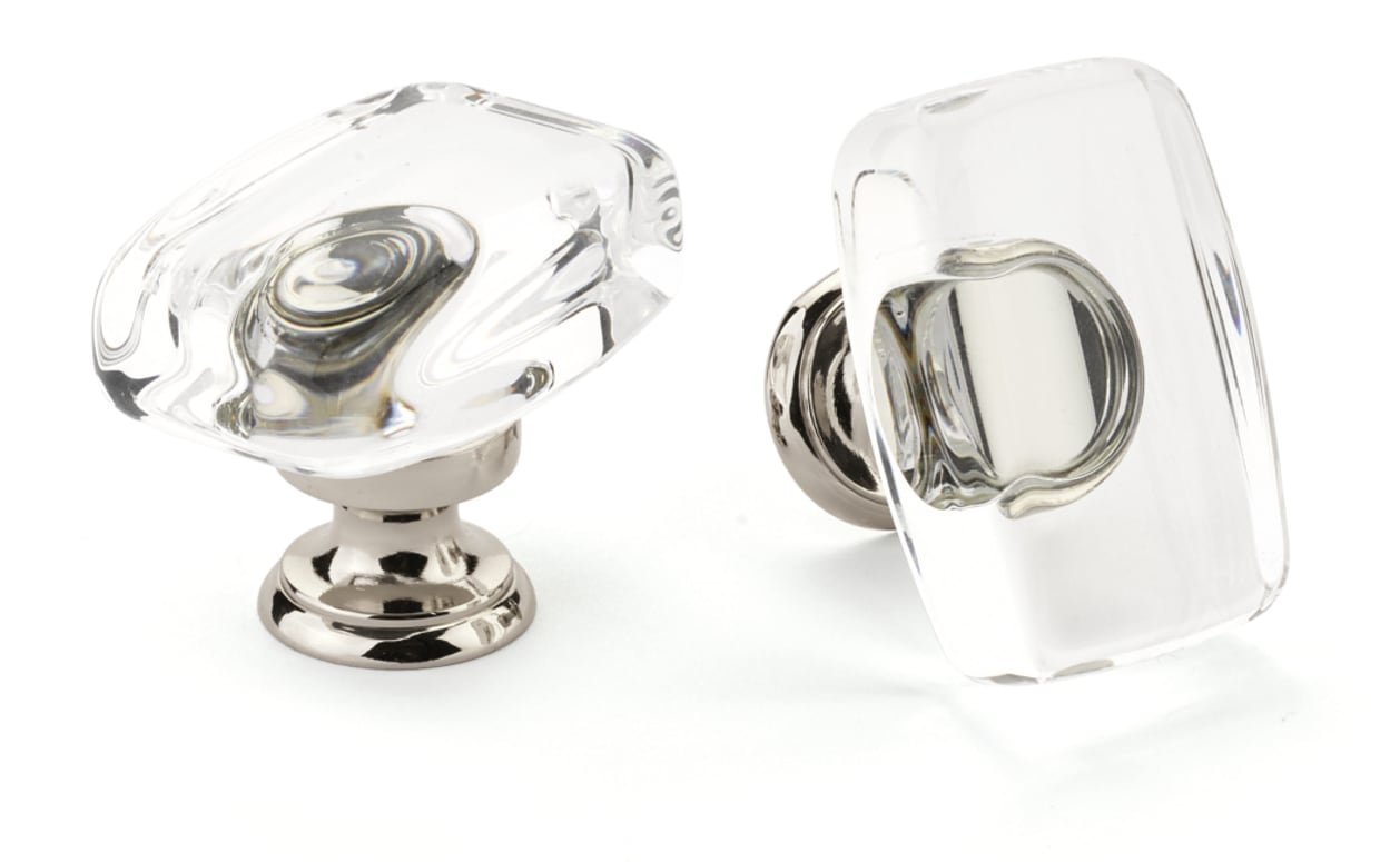 Emtek's glass cabinet knobs offer a bit of sparkle for your cabinets or vanities. Choose a base in your favorite brass finish, and pair with a glass knob in a range of sizes and shapes-- from a simply modern disc or square to a classic multi-faceted crystal look.