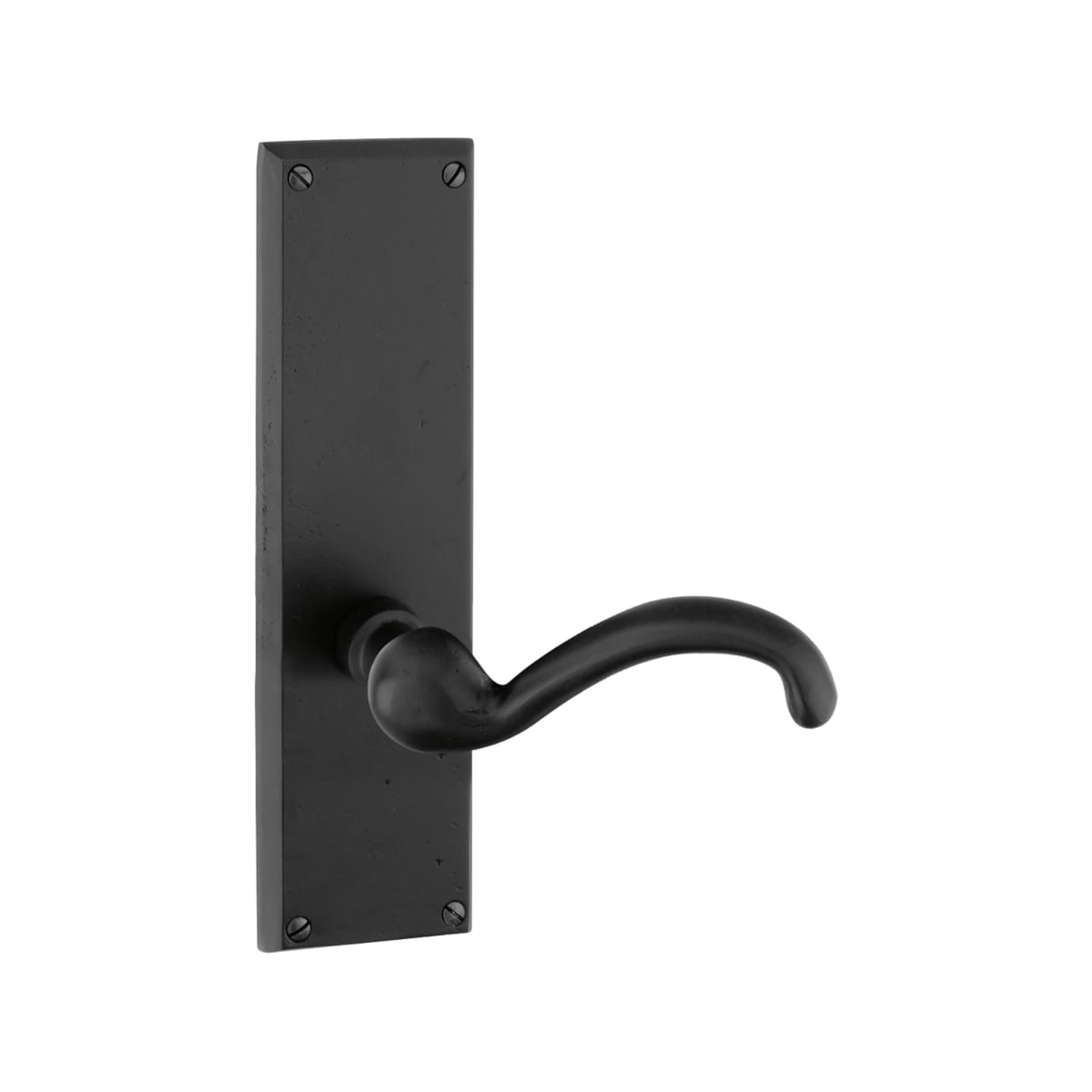 Sandcast Rectangular Keyed 5-1/2" Center to Center Sideplate with Yuma Lever in Flat Black. Design by @a.k.nackfordesign and photography by @dreamhomephoto
